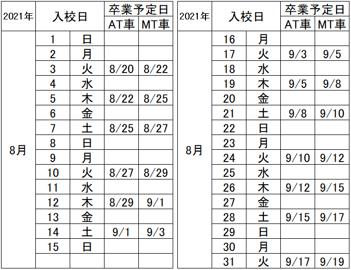 高知家・安芸自動車学校(高知県)8月のMT料金表・価格表