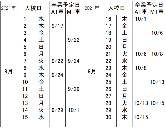 あたご自動車学校(長崎県)9月のMT料金表・価格表