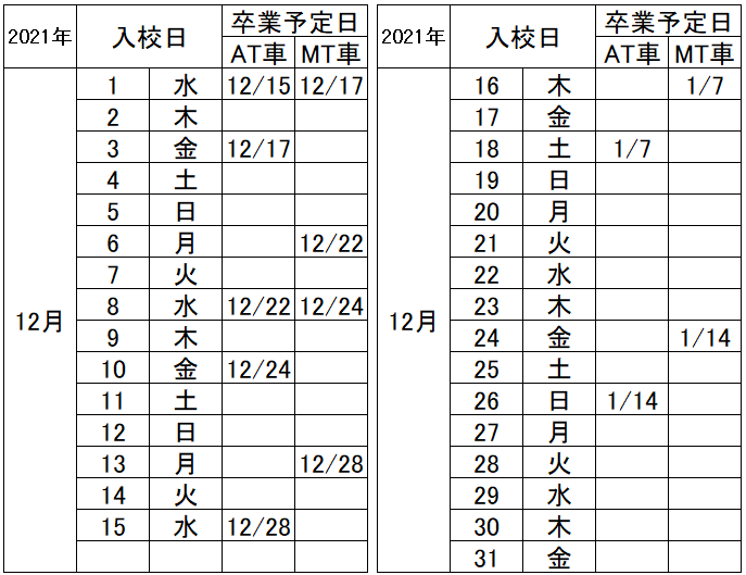 陸前高田ドライビングスクール(岩手県)12月のMT料金表・価格表 前月の料金表を見る 翌月の料金表を見る 12月1日~12月31日の料金表を見る 別途仮免許試験受験手数料1,700円/回(非課税)、仮免許証交付手数料1,150円(非課税)を教習所でお支払いいただきます。 通常の年齢制限:30歳以下 お問い合わせはこちら 12月1日~12月31日 MT料金 12月1日~12月31日 宿泊プラン MT税抜 MT税込 申込 相部屋 (3食付) 235,000円 258,500円 ツイン (3食付) 235,000円 258,500円 シングル (3食付) 265,000円 291,500円 宿泊施設の詳細を見る 陸前高田ドライビングスクールの教習所メニュー 教習所概要 アクセス・交通費 宿泊施設 料金表 割引情報 口コミ・体験談 陸前高田ドライビングスクールの入校申込・電話申込